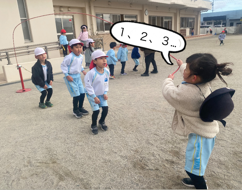 朝の外遊びでも自分たちで縄もまわして練習する姿が…。