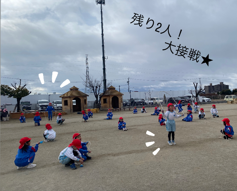 今年は決勝戦までに進んだ子はクラスの半分以上おり歴代1位といわれるほどたくさん!子ども達の中には冬休み前は数回しか跳べなかった子もおり、子ども達の頑張りが感じられました。