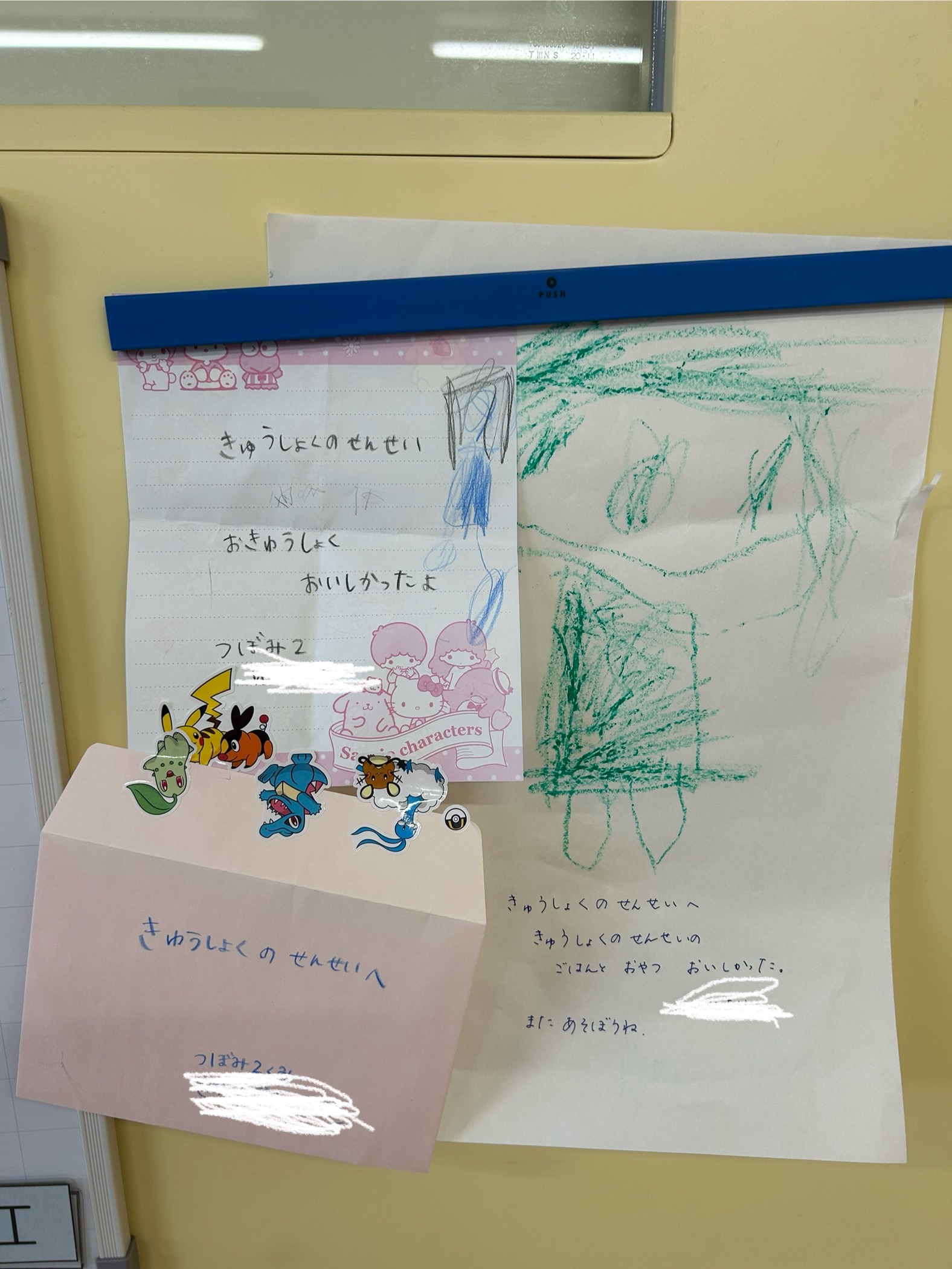 いつも美味しく給食を食べれてるよと、一生懸命お手紙を書いてくれて、すごく嬉しい気持ちになりました。可愛いこども達の為に、毎日給食室も頑張ります。