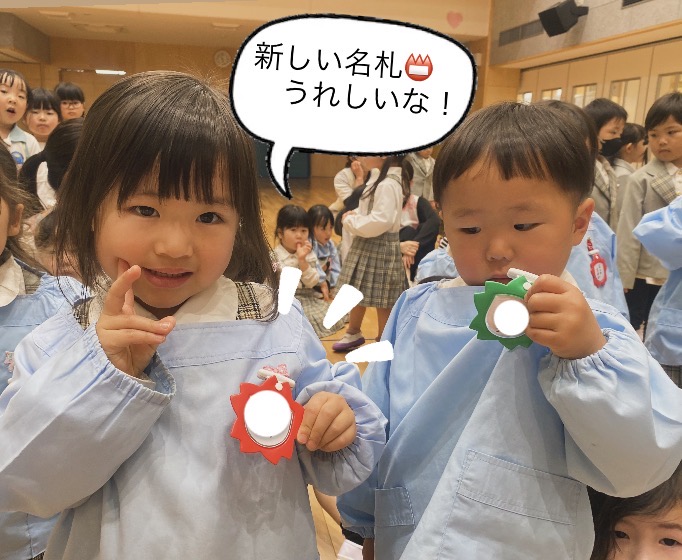 久しぶりの登園の子どもたちは新しい名札をつけてもらって嬉しそうな表情でしたよ!