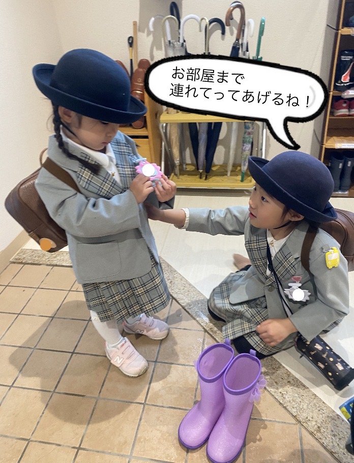 慣れない園生活で疲れて帰る子も多いと思いますので、お家でしっかり休ませてあげて下さいね。