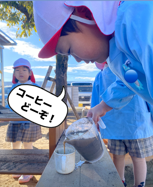 その後も近くにいたお友だちに「どうぞどうぞ~♡」と配り、大人気のコーヒー屋さんになっていましたよ!