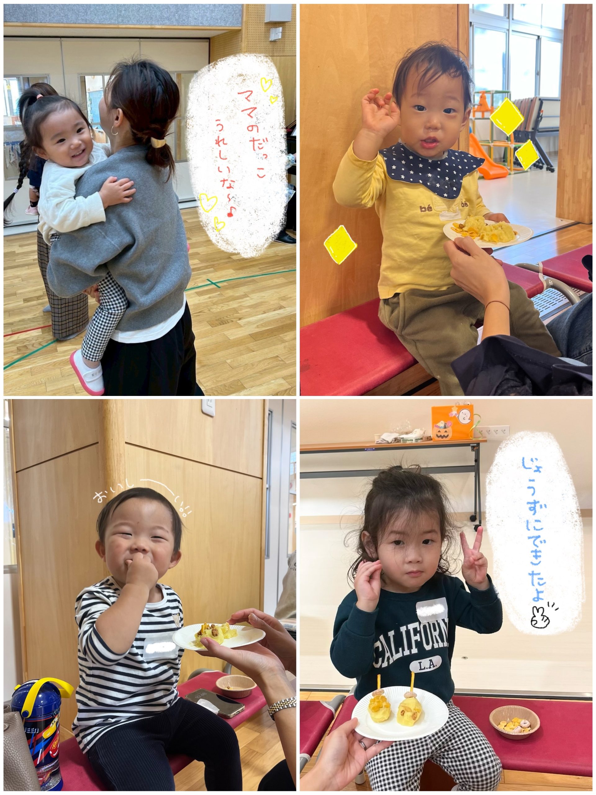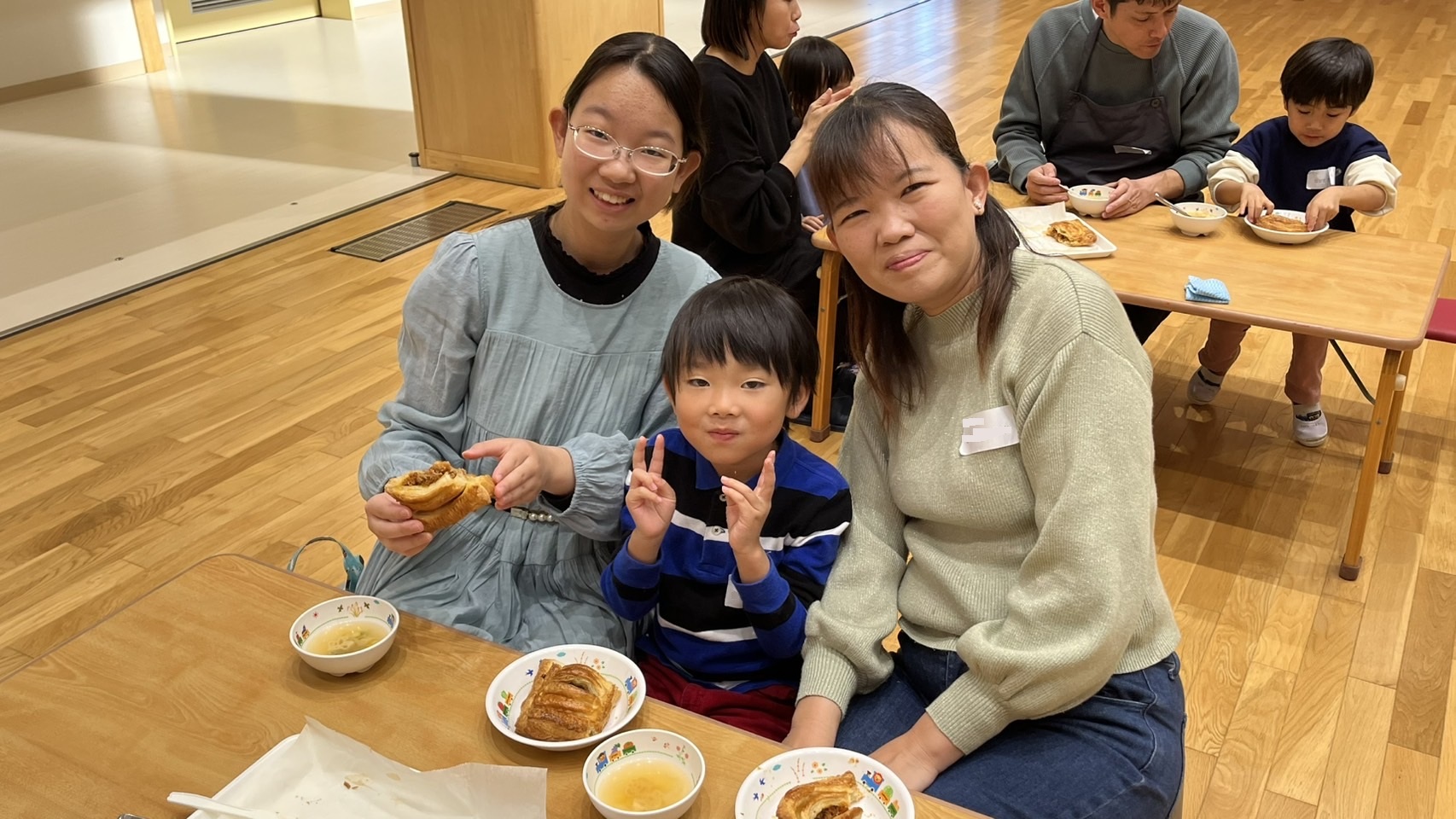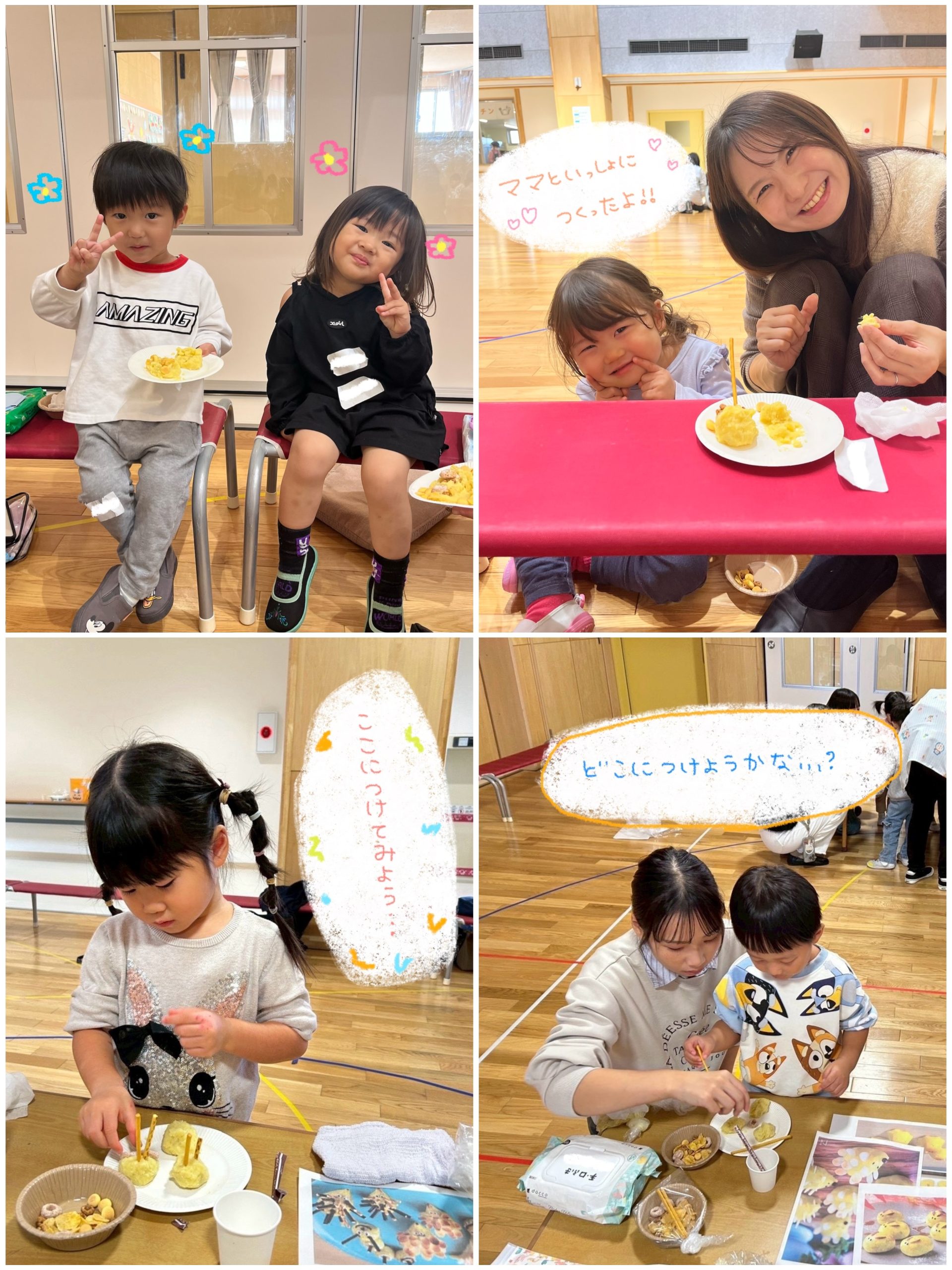 温かいうちに試食し、結構大きかったですが、美味しくて1個ペロッと食べている子もいました。
