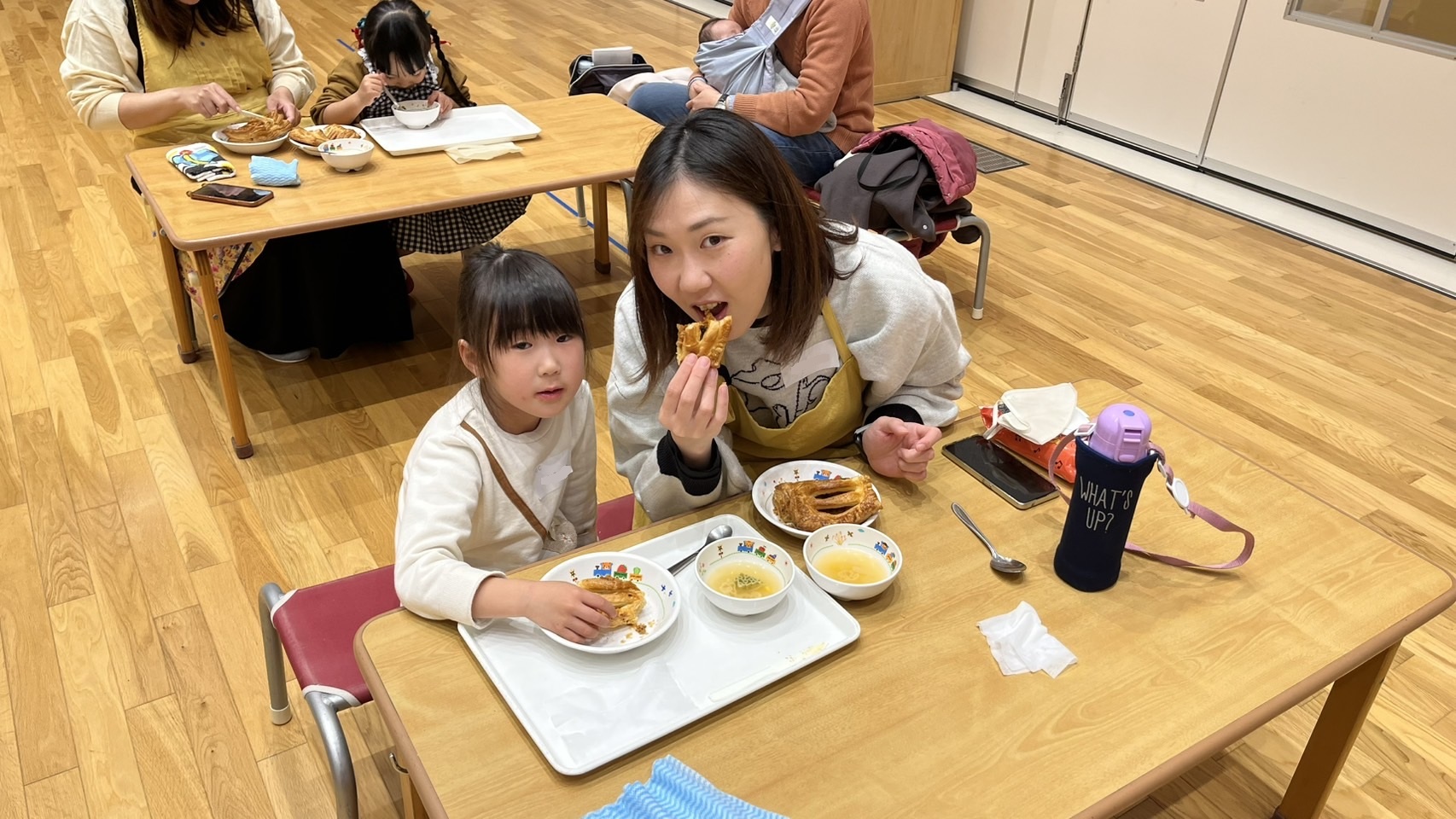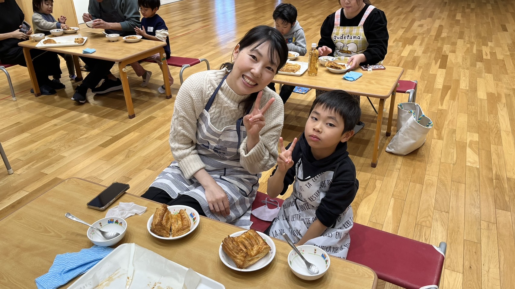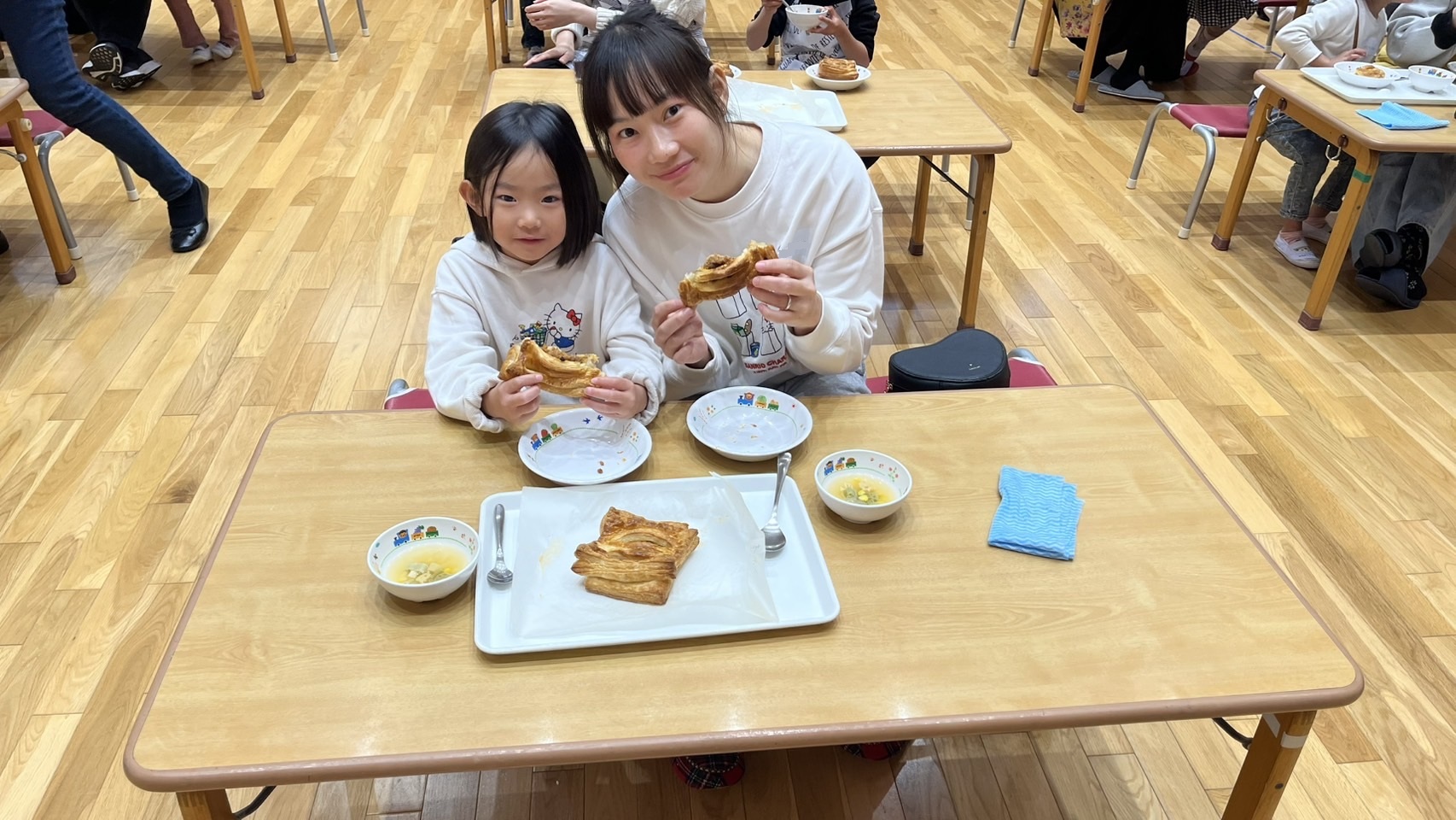 温かいうちに試食し、結構大きかったですが、美味しくて1個ペロッと食べている子もいました。