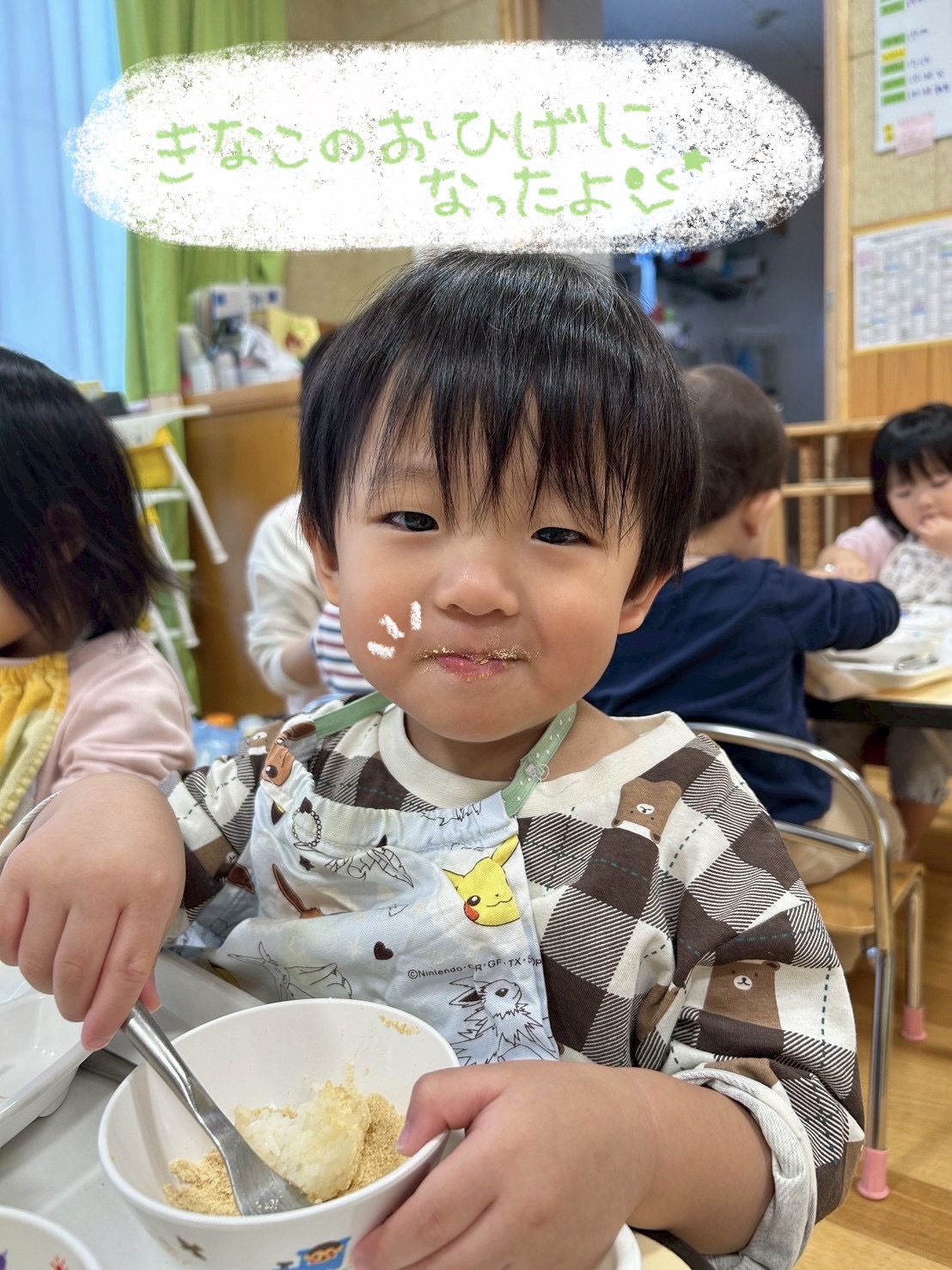 子どもたちの大好きな「きなこ」をかけて