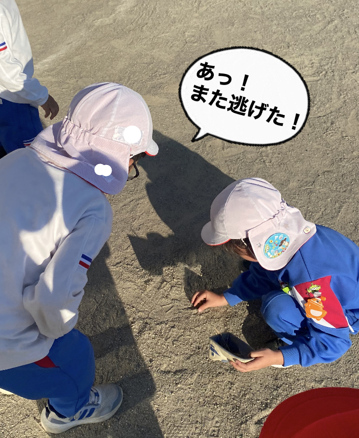 大慌てで捕まえてはままごとのカップに戻す子ども達!