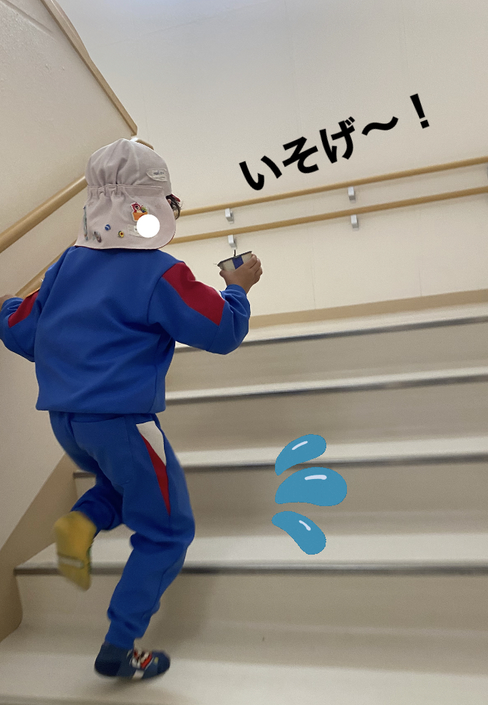 虫かごを持ってくるかと思ったら虫かごのある保育室までダッシュ!