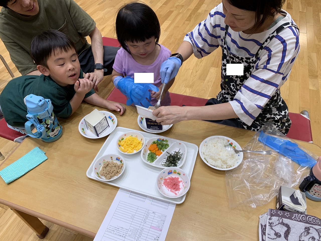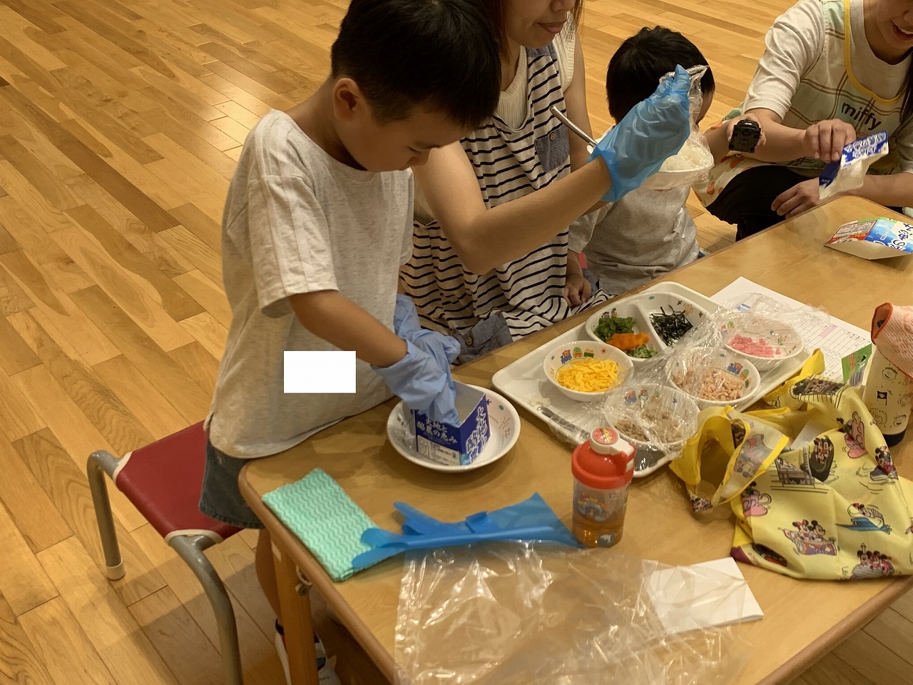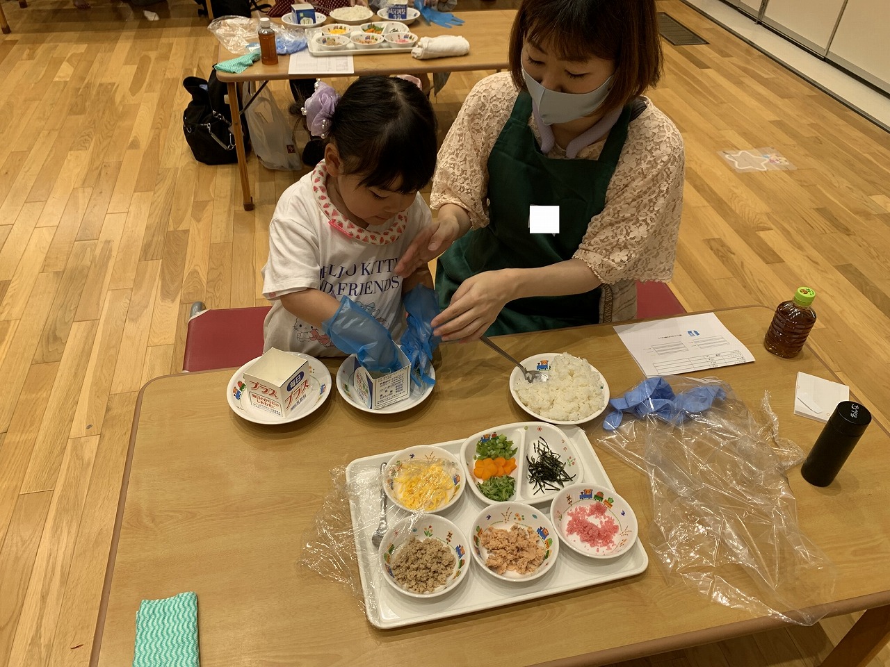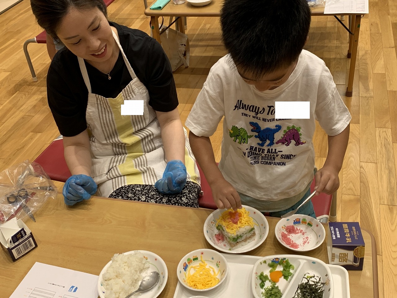 つぼみ組のお子様からすみれ組のお子様まで、親子で一緒にお寿司を作り、