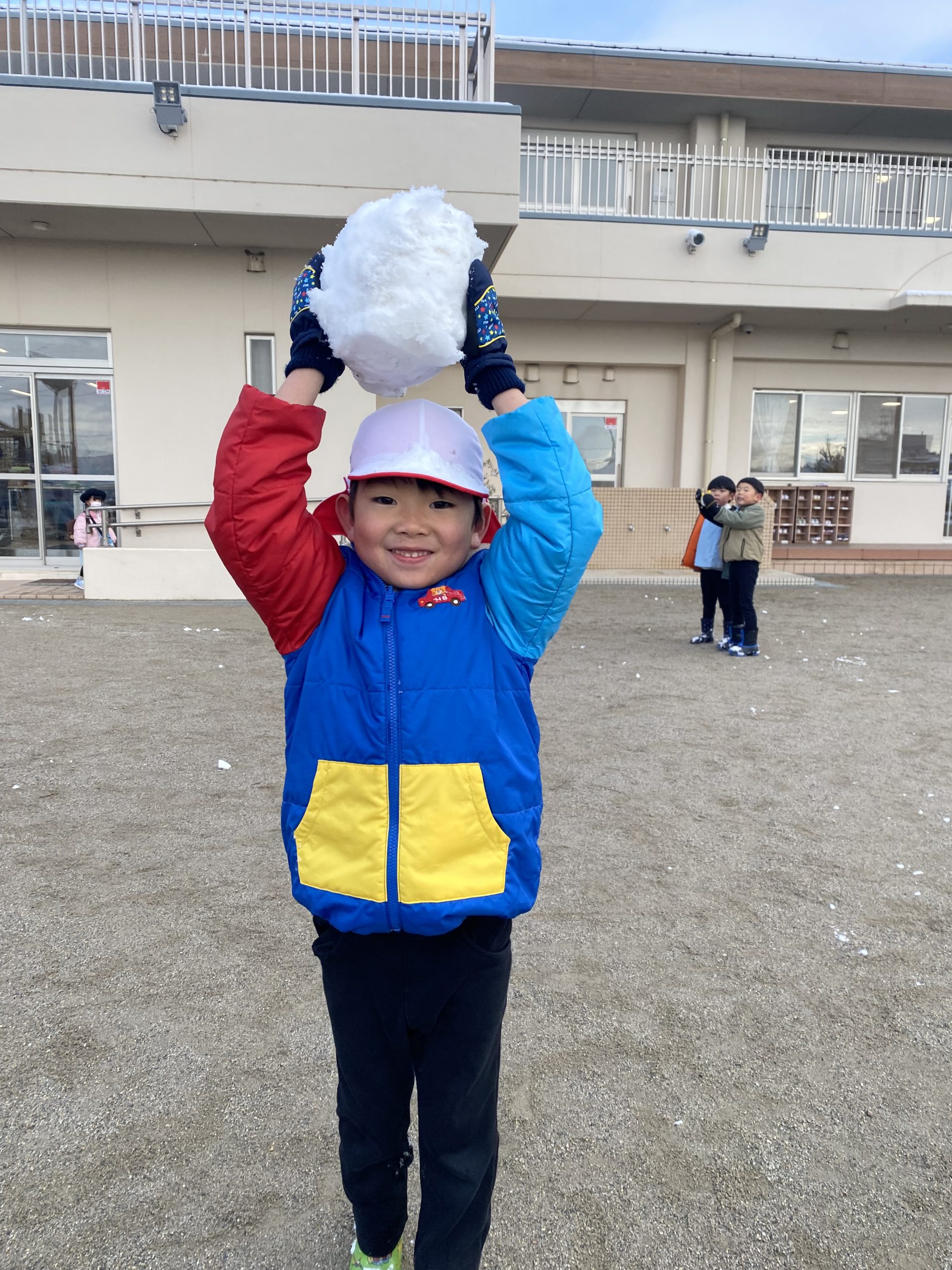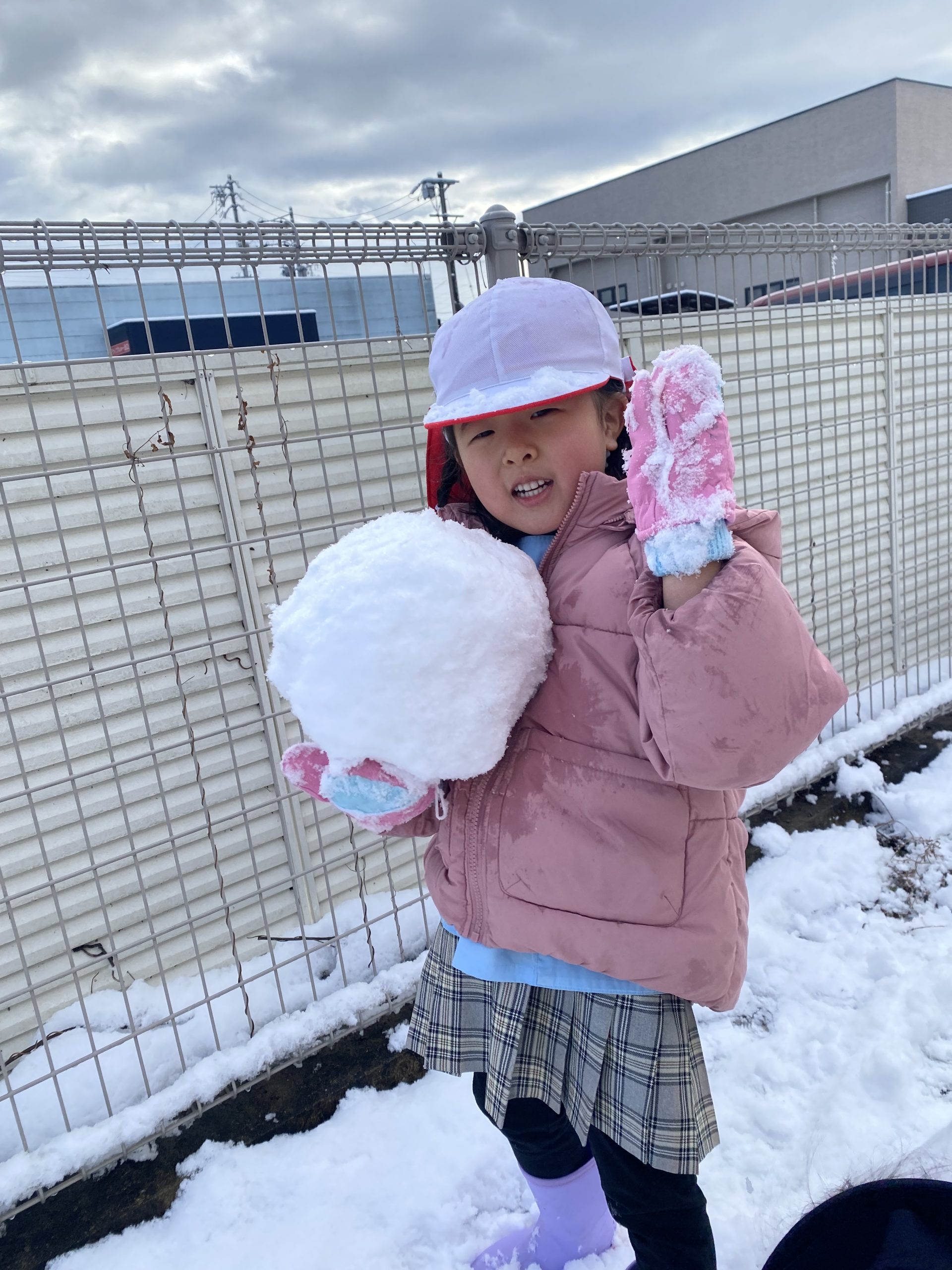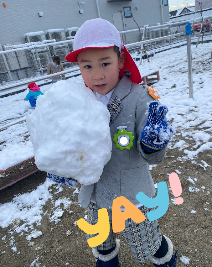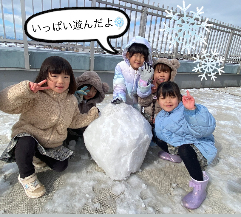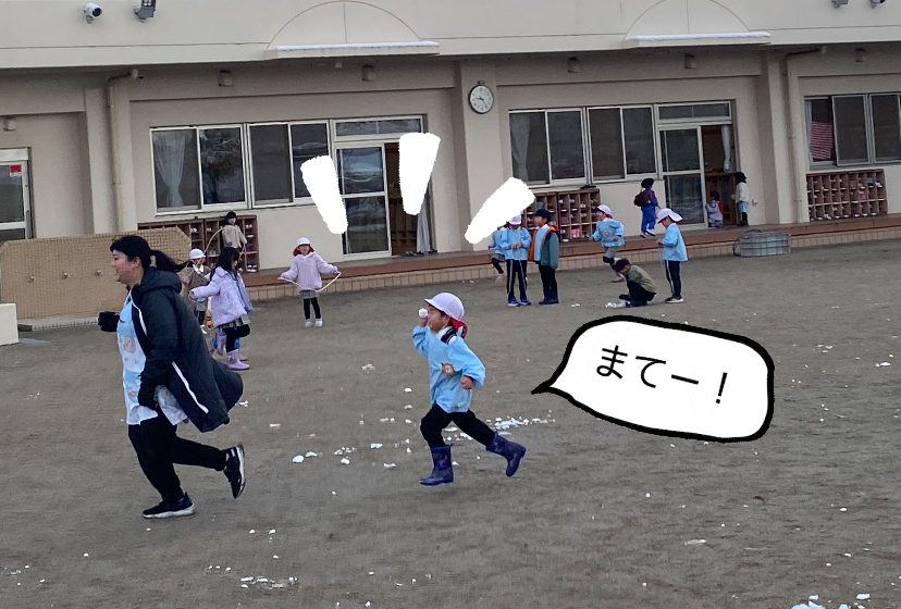 最初は軽く投げ合っていたのが、気付くと子ども達に囲まれて集中攻撃を受けたり、かたーい雪で勢いよく当てられ「いた~い!やめて~。」とまるで豆まきの鬼状態に!そして、時には先生同士も当て合って賑やかな時間でした☆