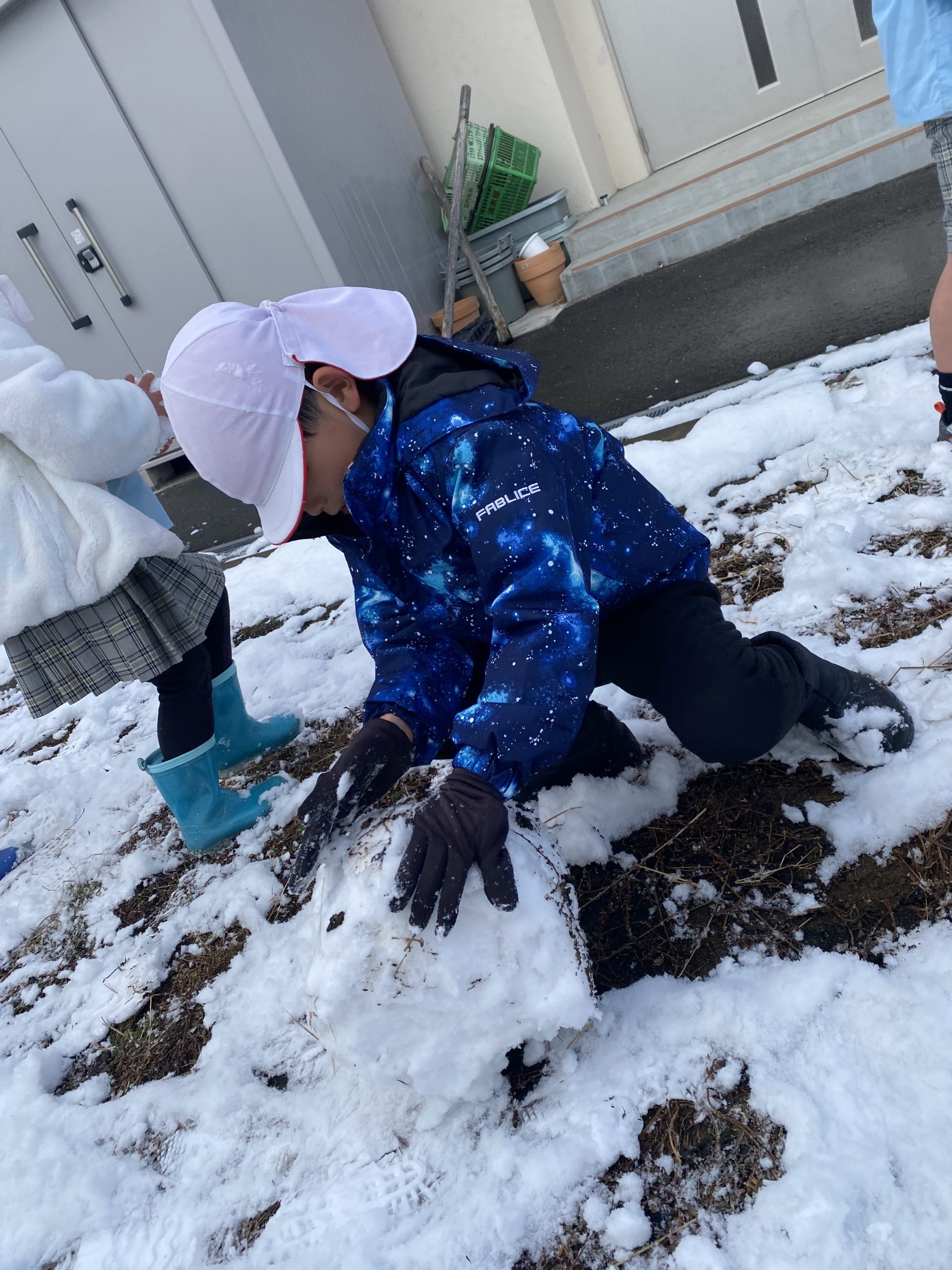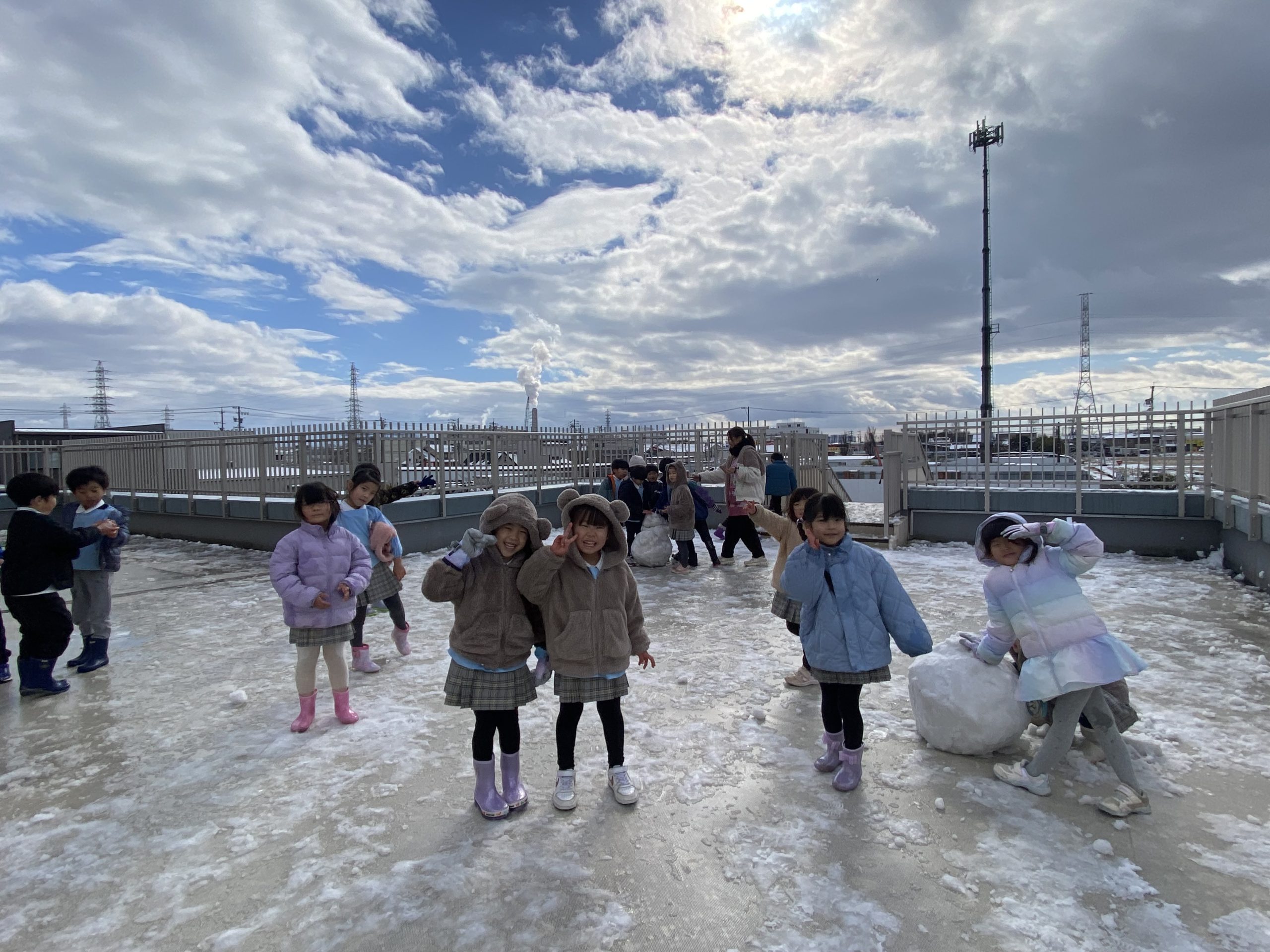 溶けてしまう前に!ということで登園したお友だちから園庭へ。