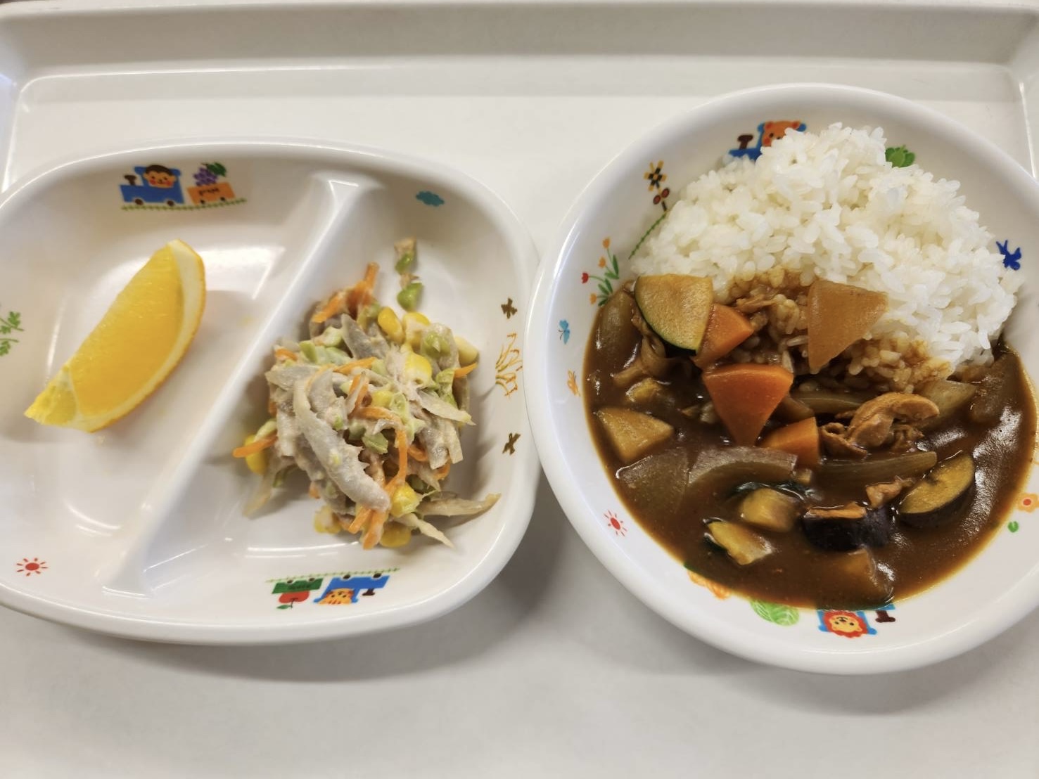 今日は苦手な野菜のなすやズッキーニの入ったカレーでしたが、しっかり食べれダようです!