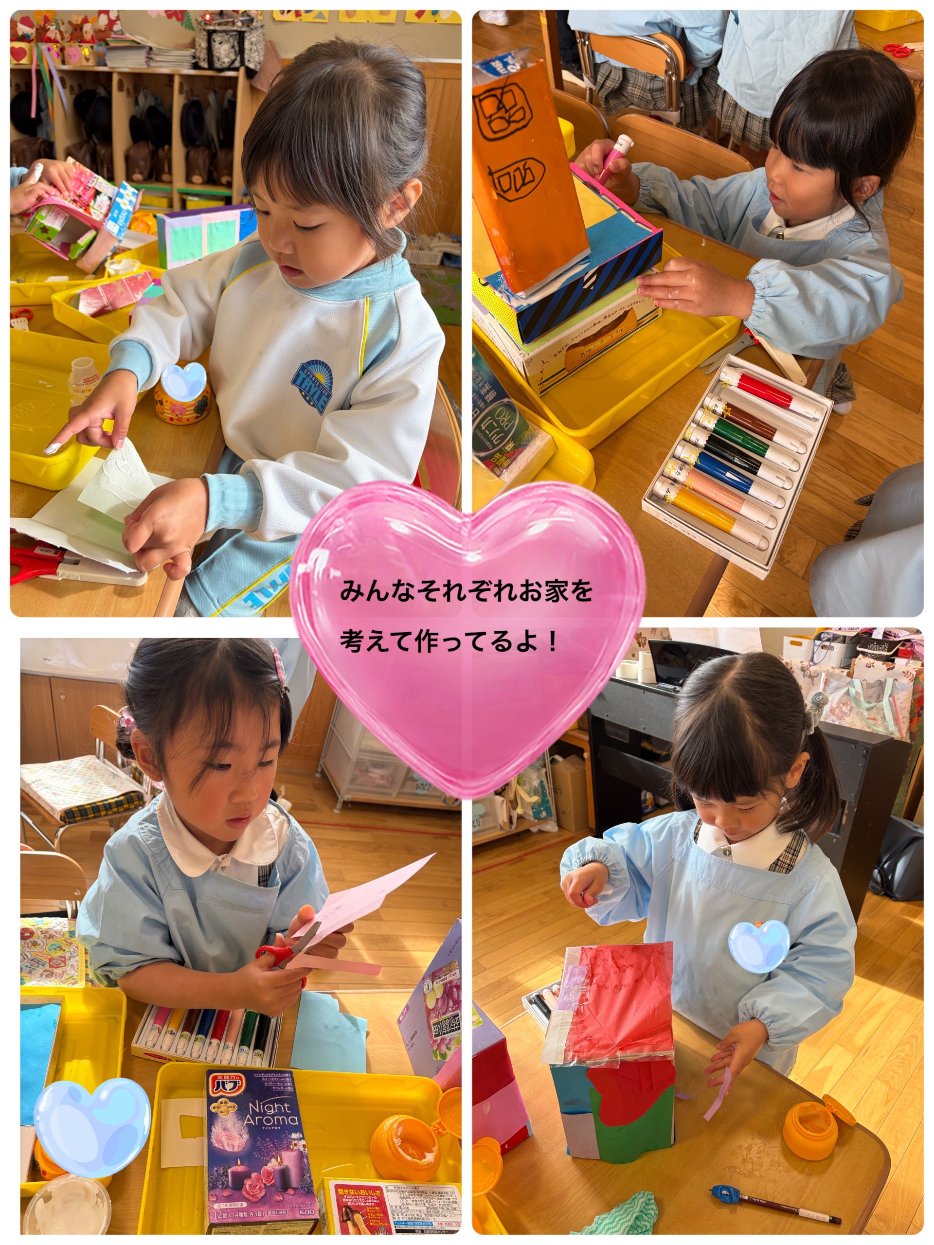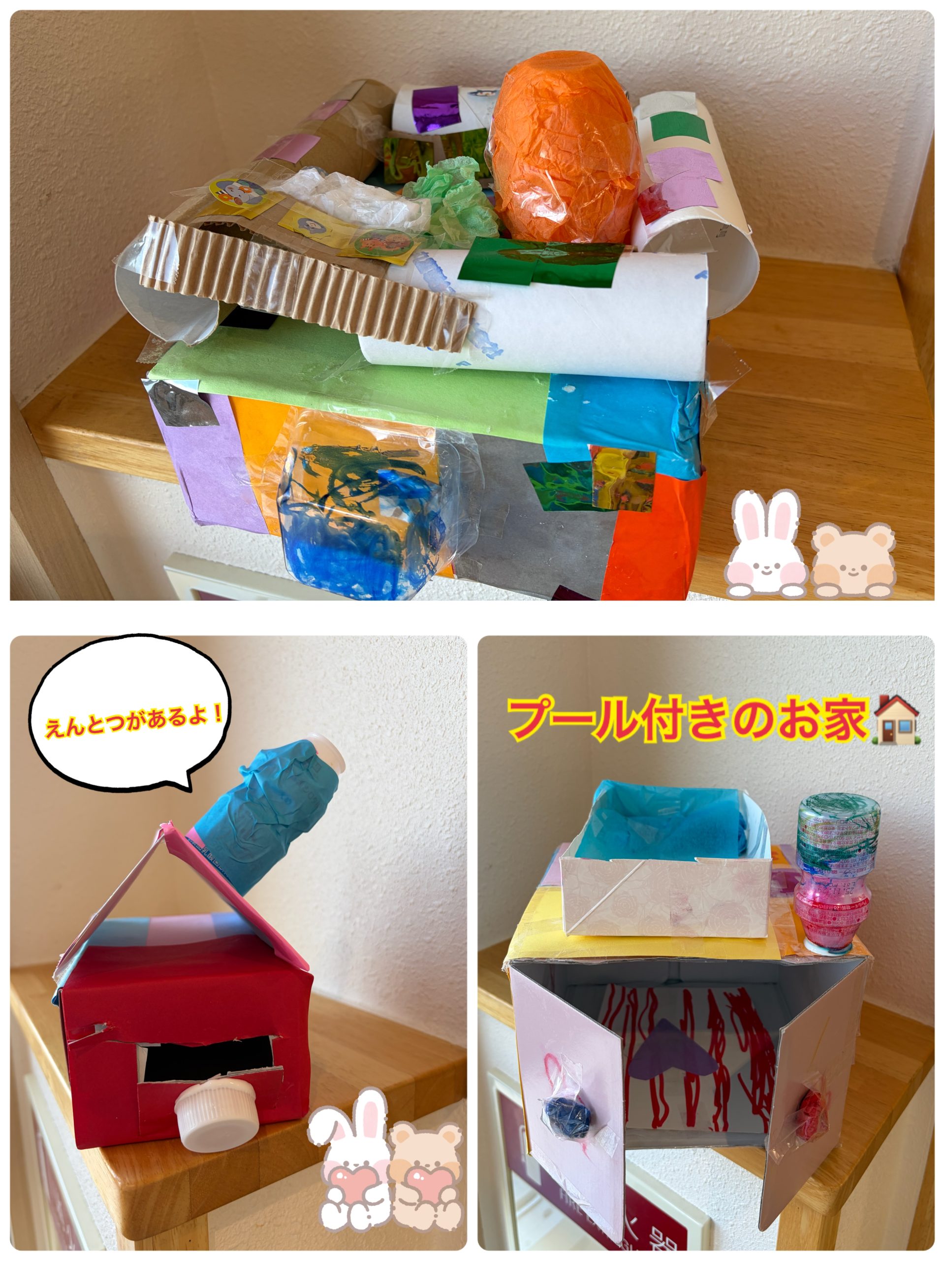 今回の廃材遊びのテーマは「お家🏠」をテーマに作りましたよ‼︎