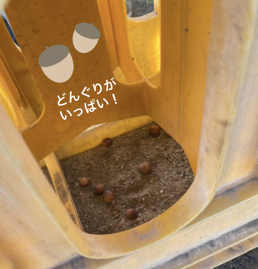 途中、中段でどんぐりが引っかかってしまうと、最初に落とす位置を変えて挑戦していましたよ!