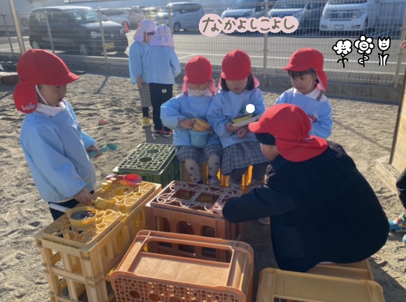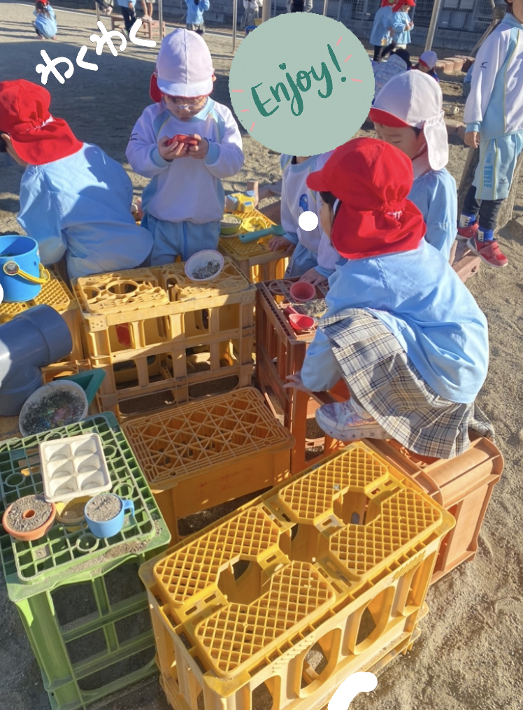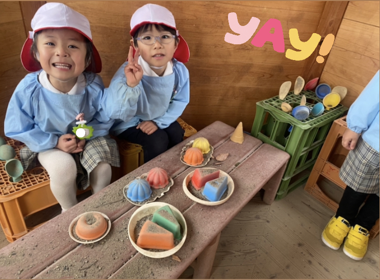 3学期頃から砂場の近くに机を設置しました!