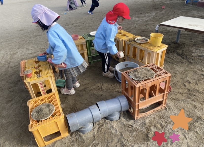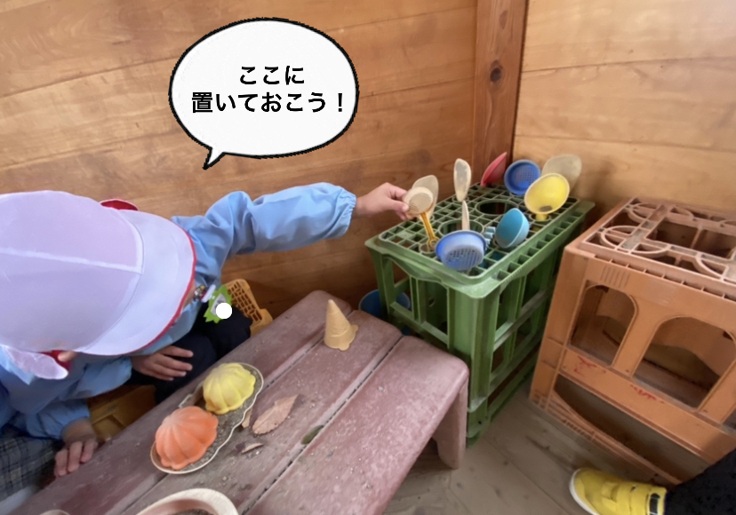 そこで、砂場のままごと遊びがより発展するように