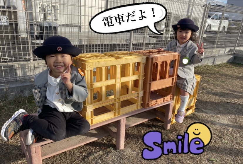 「出発進行‼」ベンチも組み合わせて電車に大変身☆